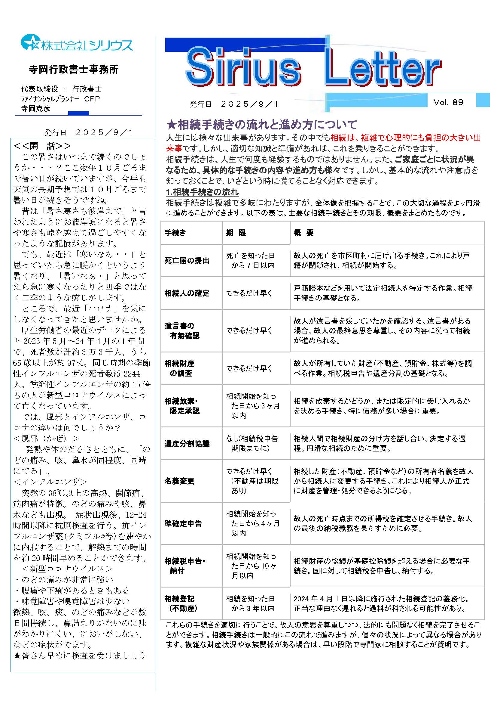 早速ですが、「シリウスレターVol.89」をアップしましたので、ぜひご一読ください。